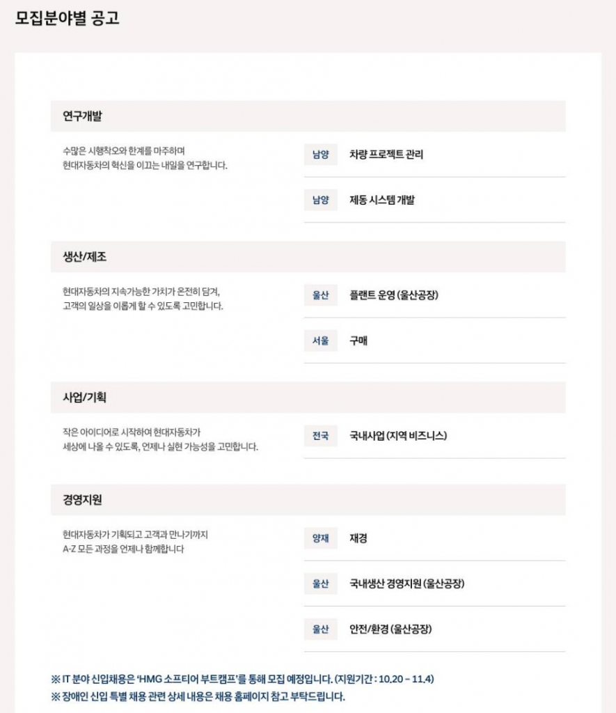 🔎2025 현대자동차 10월 채용공고 주요 내용