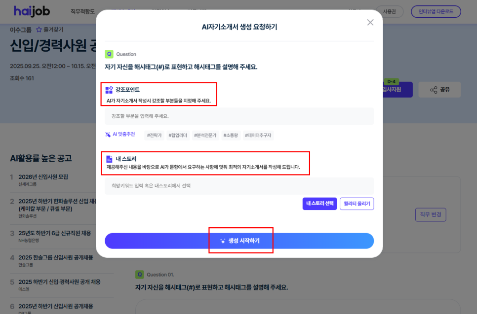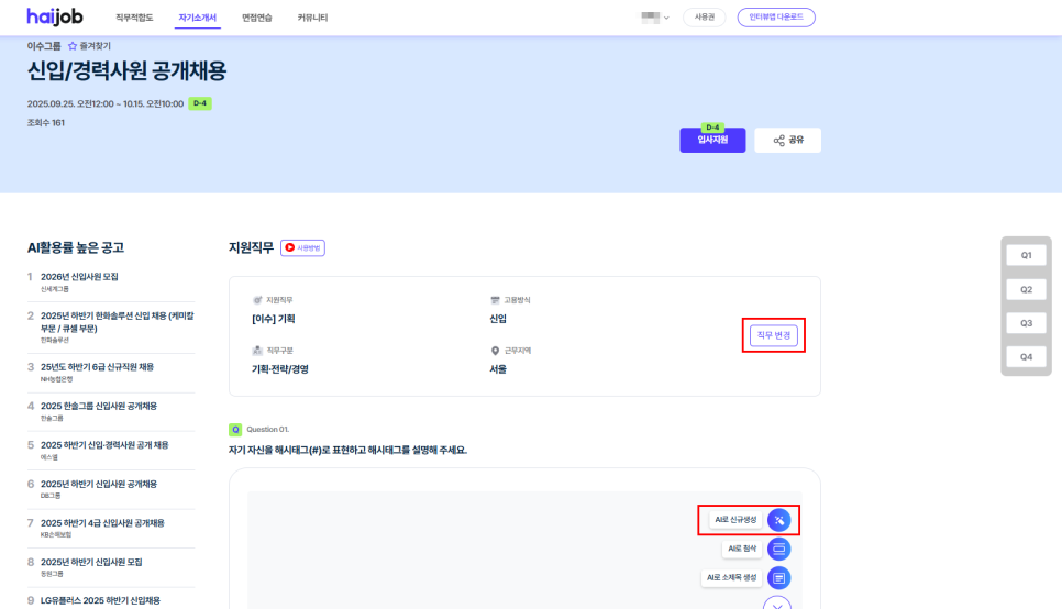 AI 자소서·면접 플랫폼 '하이잡(haijob)'을 활용해 보세요.