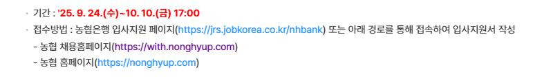 2025년 하반기 NH농협은행 신입행원 채용이 시작됐습니다.
