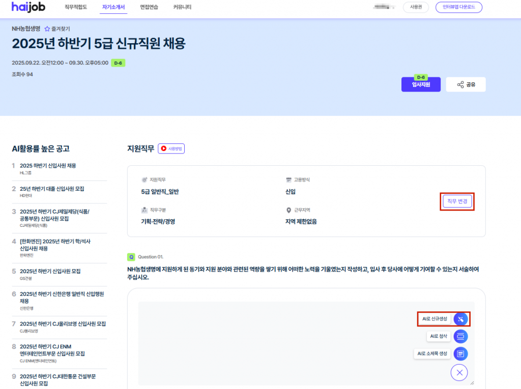 ✨하이잡으로 NH농협생명 자소서 쓰는 법 4단계!