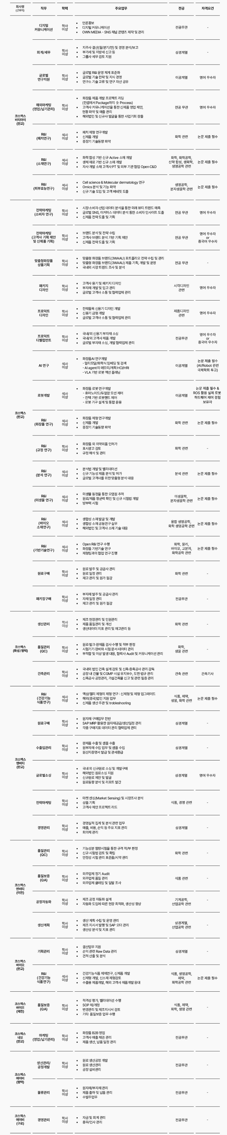 📍2026년 코스맥스그룹 채용 주요 내용