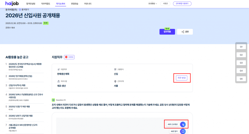 지금 하이잡으로 동국씨엠 자소서 초안을 빠르게 잡고,