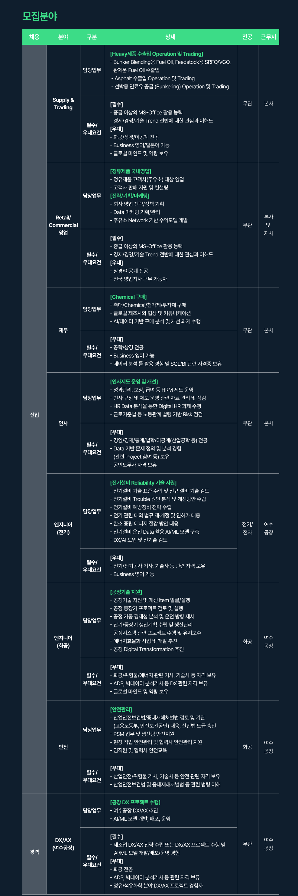 ✅ GS칼텍스 모집 분야 및 지원 자격