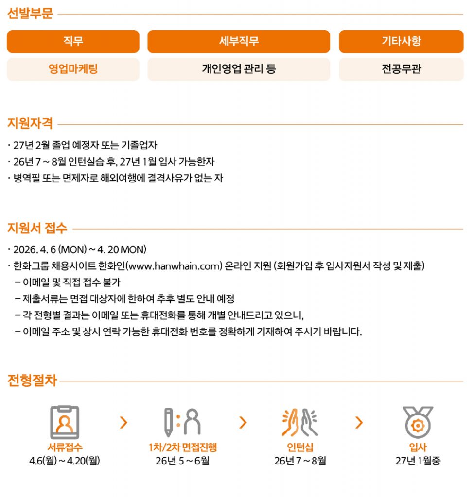 📍2026년 한화생명금융서비스 채용 주요 내용