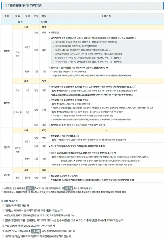 ✅ 건강보험심사평가원 채용예정인원 및 자격기준