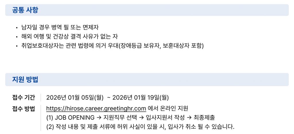 📍 2026년 HRS코리아 채용공고 주요 내용