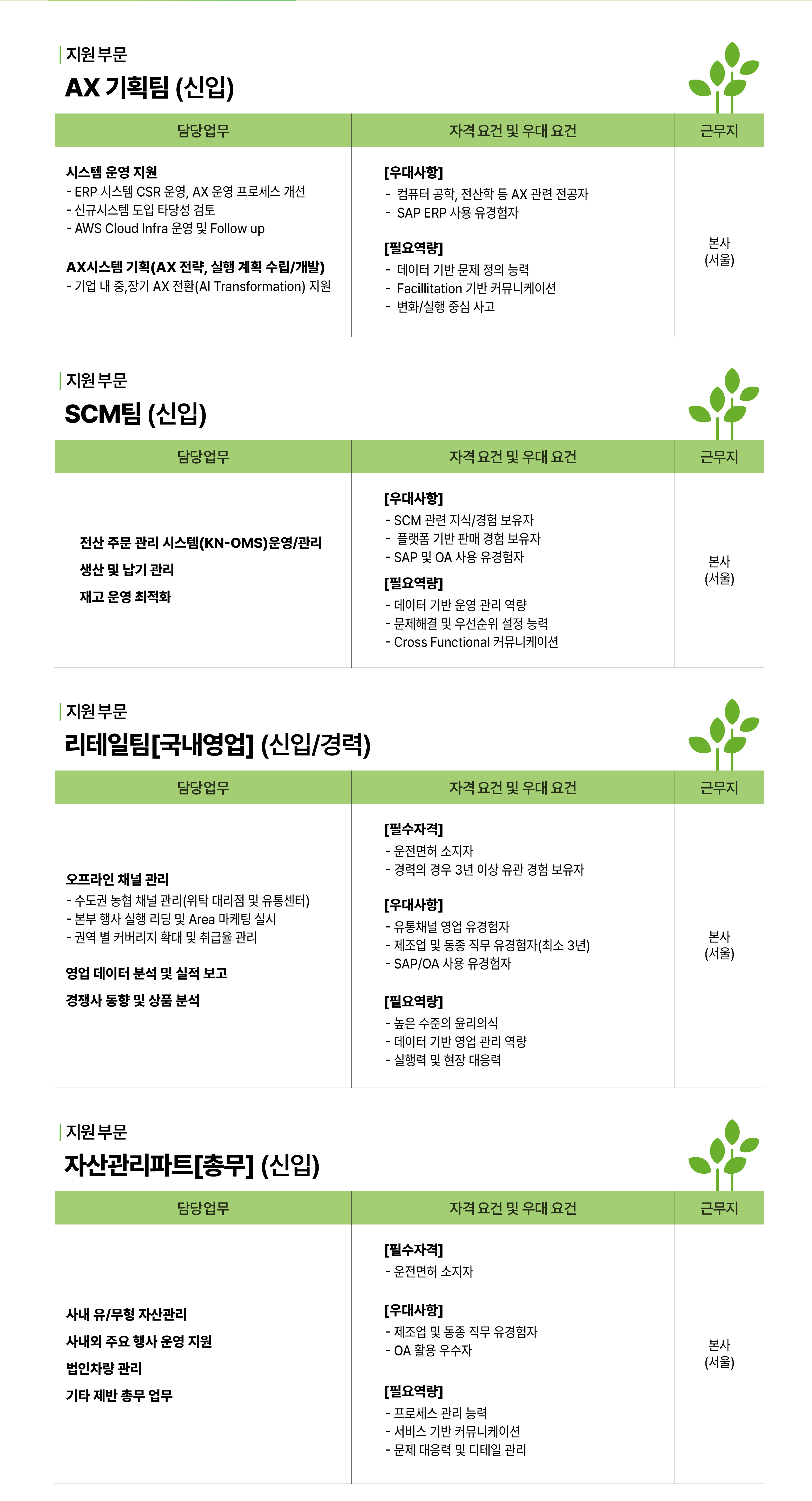 깨끗한나라 채용 모집부문