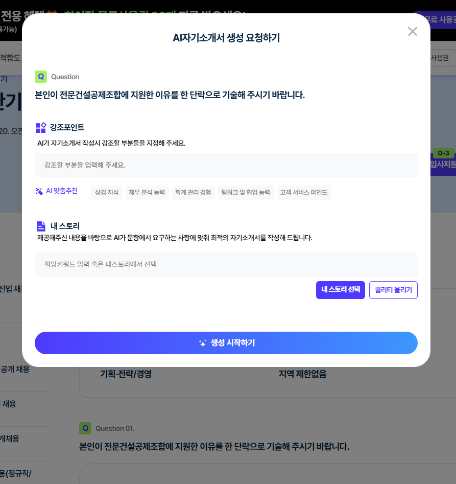 채용공고 맞춤형 자소서를 생성해주는