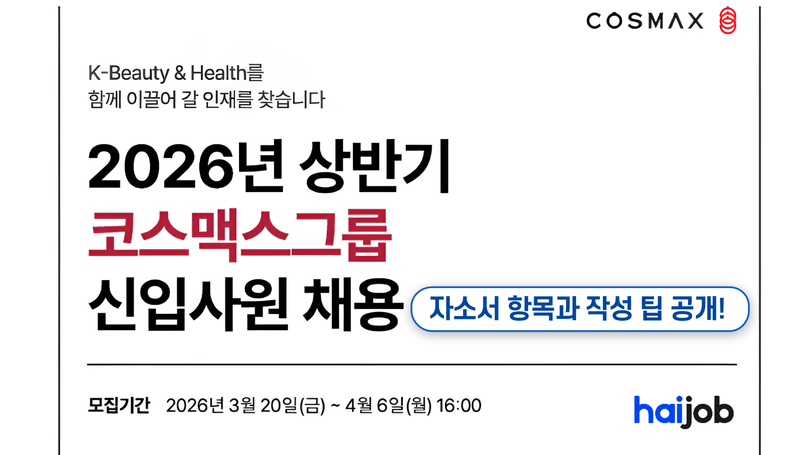 코스맥스그룹 채용! 2026년 자소서 항목과 작성 팁 총정리