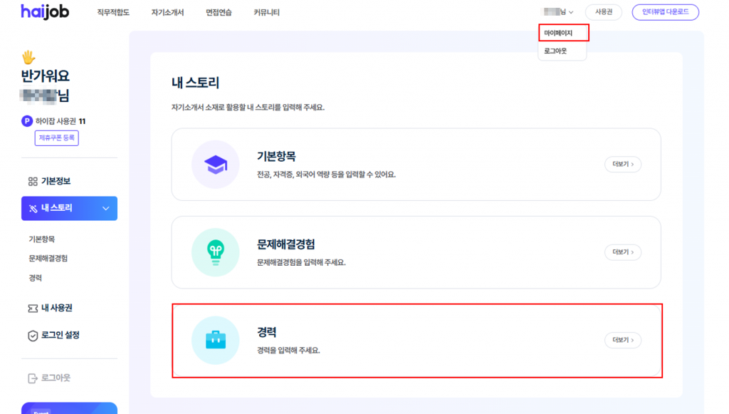 👉 하이잡에서 내 경력부터 정리해보기