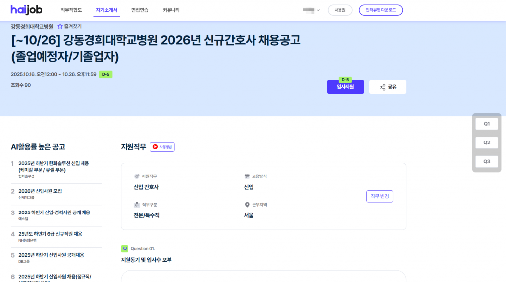 👉 [2026 강동경희대병원 간호사 채용 맞춤 자소서 써보기]