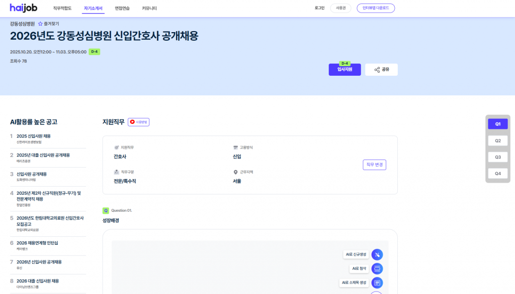 👉 지금 하이잡 사이트에서 더 많은 병원 채용공고 맞춤 자소서를 작성해 보세요!